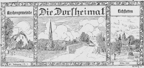 Von 1906 bis 1939 gab es einen Evangelischen Gemeindeboten unter dem Titel „Die Dorfheimat“. Er wurde parallel für zunächst acht, später für ca. 50 Gemeinden herausgegeben. Jeweils auf der vierten Seite stand bei uns die „Chronik von Eichstetten“, verfasst vom Ortspfarrer. Die Titelvignette seit 1920 hatte Albert Ludwig gezeichnet, der Sohn des damaligen gleichnamigen Pfarrers. Mit dem Beginn des II. Weltkriegs endeten diese Ausgaben.
